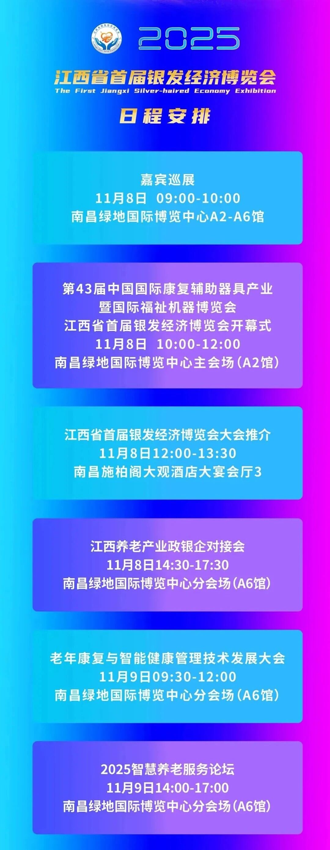 第43届中国国际康复辅助器具产业暨国际福祉机器博览会、江西省首届银发经济博览会将于2025年11月8日-10日在南昌召开。